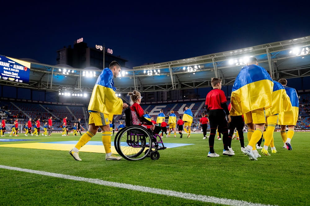 Вперше в історії передматчевих церемоній національної збірної України гравця на поле вивела дитина на кріслі к...